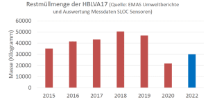 HBLVA17 has been EMAS certified since 2017, which is why the residual waste has to be collected. In the past, the fill level of the containers was estimated with the help of a broom in 25% increments. During an observation period of four weeks, one student had to estimate the container stock by hand every day. The problem, besides the inaccurate estimation, was that the measurement was not always possible, since the garbage was often already picked up by the disposal company. From the collected estimation data, the average filling quantity was collected, which in turn was added up to the year.